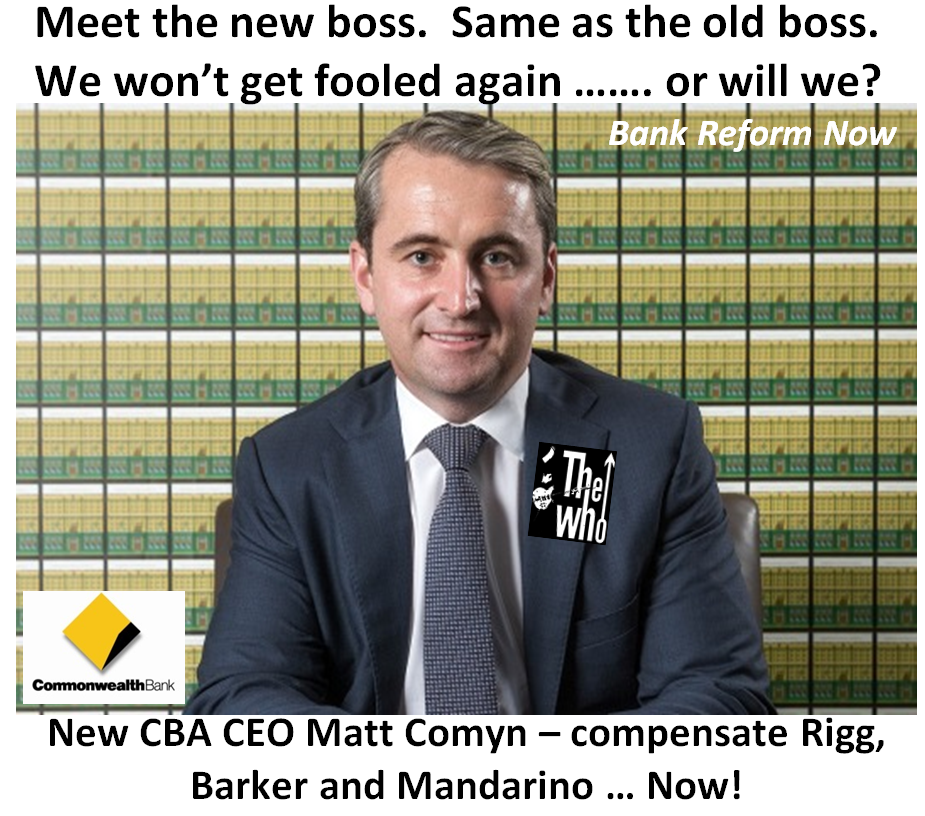 The CBA Box Hill Scandal has made news around the world. Debbie Barker has sent an update to BRN. We think that Matt Comyn has no choice but to call the victims and pay them full compensation. And while he's at it .... how about a genuine apology. Oh ... and Mr Comyn should also call our friend Tony Rigg. Don't you think 30 years is a bit long for Tony to wait? What are you waiting for Matt?