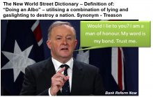 The government is playing dirty to try and ram through the Cash Ban Bill. The Senate refused publication of thousands of submissions including the one from Bank Reform Now. We publish it here and encourage you to get active. Albanese and his ALP also want to ban cash. The only way we can stop the Bill is to force Scott Morrison to scrap it. We need to split the Liberal and National parties. Some of their members are opposed to it and the Victorian State branch voted against it recently. Time to take a stand against pollies working in the interests of foreign powers and organisations.